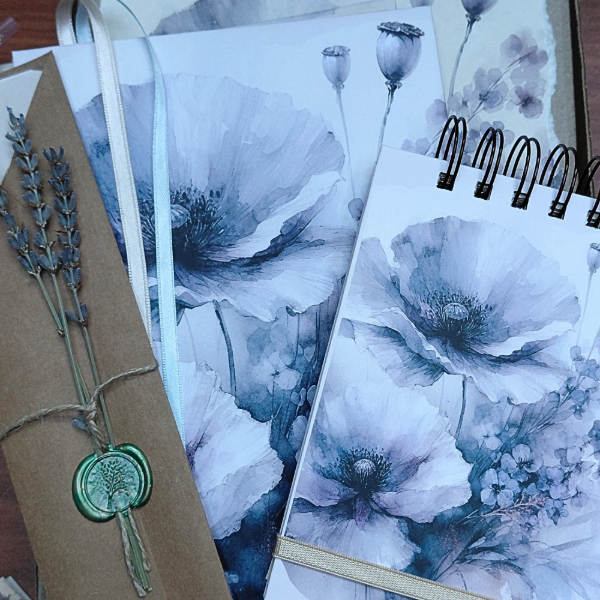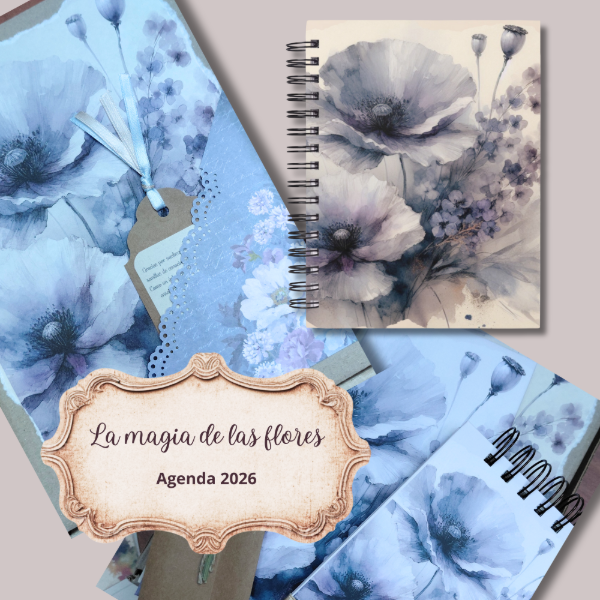 Promo primavera Set agenda mas libreta flores azules