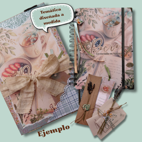 Tamaño A5, 15cm x 21cm. Tapa dura, cartón 2mm laminadas.